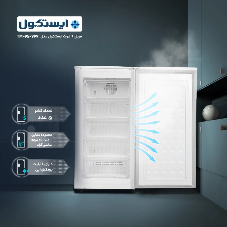زیبا و مدرن همراه با کیفیت ساخت بالا، فریزر 9 فوت ایستکول مدل 5 کشوی 999 را به محصولی جذاب و بادوام
