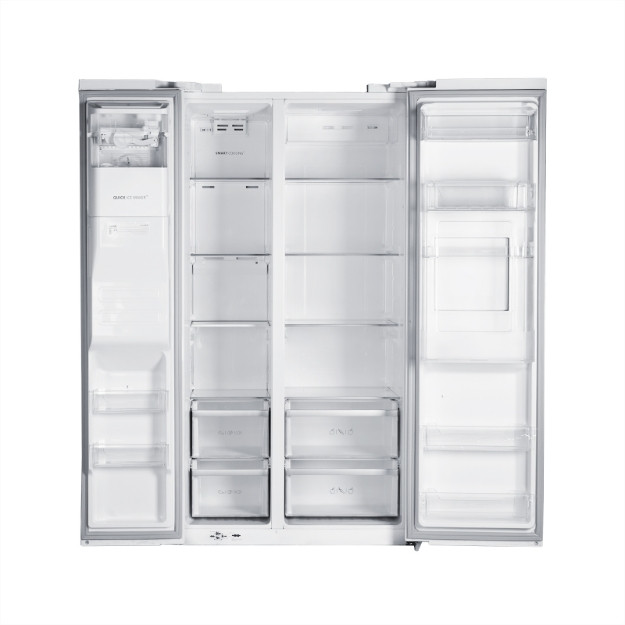 یخچال و فریزر ساید بای ساید اسنوا در سریهای هوشمند با ابعاد 27 فوت، دارای قابلیتهای هوشمند تضمین شدهای است. حسگر هوشمند برای تشخیص دما با دیگر سیستمها به سرمایش یکنواخت ستگاه کمک میکنند. افزون بر این به دلیل وجود بوگیر قدرتمند، محفظه درونی یخچال بو نمیگیرد، در نتیجه همیشه یک یخچال تمیز با مواد غذایی سالم خواهید داشت.