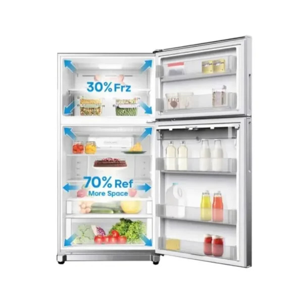 این یخچال از 3 طبقه و 2 کشو در قسمت داخلی و از 3 طبقه بر روی درب برای نگهداری بطری، تخممرغ و دیگر اقلام غذایی برخوردار است. فریزر یخچال بالا فریزر 28 فوت دوو مدل TMI-30GWرنگ سفید ، در بخش بالایی قرار دارد. دو طبقه جادار و بزرگ در قسمت داخلی و دو طبقه جادار دیگر بر روی درب، این یخچال فریزر را به یک انتخاب مناسب تبدیل کردهاست.